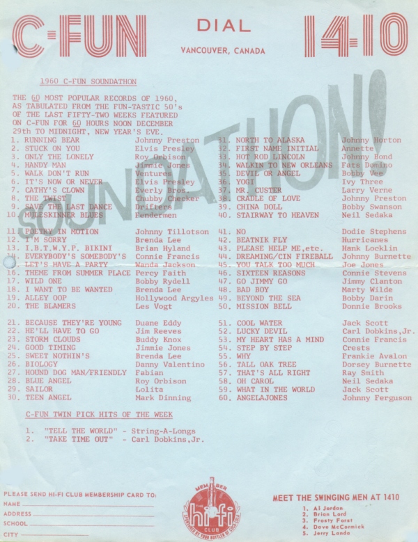 C-FUN's twice annual extravaganza of hits from the past. Listeners
